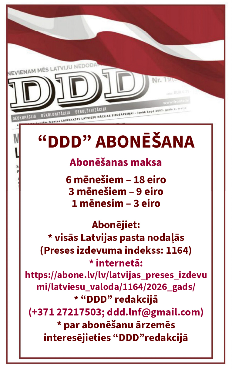 Laikrakstu “DDD” iespējams abonēt arī lasītājiem ārzemēs. Interesentiem jāvēršas laikraksta redakcijā, lai noformētu abonementu.